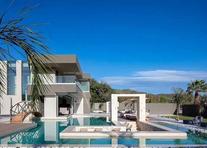 Located around a 10-minute drive from the Kalyvaki Beach, the 4-bedroom Elinor Villa - Nature Retreat Amidst Mountains & Lake By Etouri Chania offers a terrace with views of the pool. Featuring bicycle and car rentals, the Chania villa invites guests to visit the Agios Nikolaos Chapel, situated 3.2 km away.